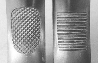 If your Woodsman is pre-WWII it will have a pattern on the mainspring housing, where the web between the thumb and forefinger touches when holding the pistol in firing position. If that pattern is checkered (left), it was made for standard velocity ammo. If the pattern is horizontal parallel lines (right), it was designed for high velocity ammo. If it is a post WWII gun it will have no such pattern, because all were designed for high velocity ammo.