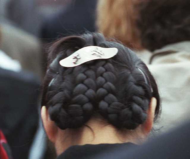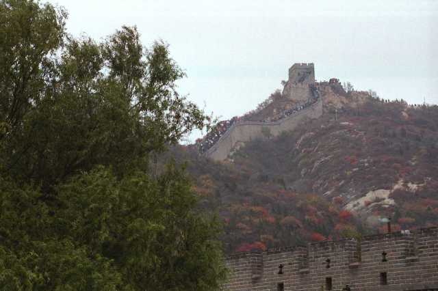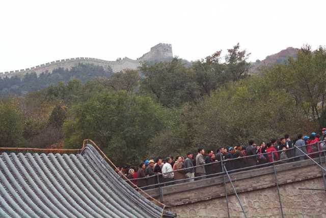 | The lineup to climb the Great Wall | Interesting Hairdo in front of me in the line | ||
