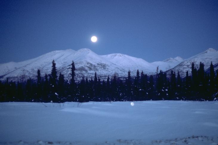 | Moon over the Chugach range, 4:30 PM, Anchorage Alaska |